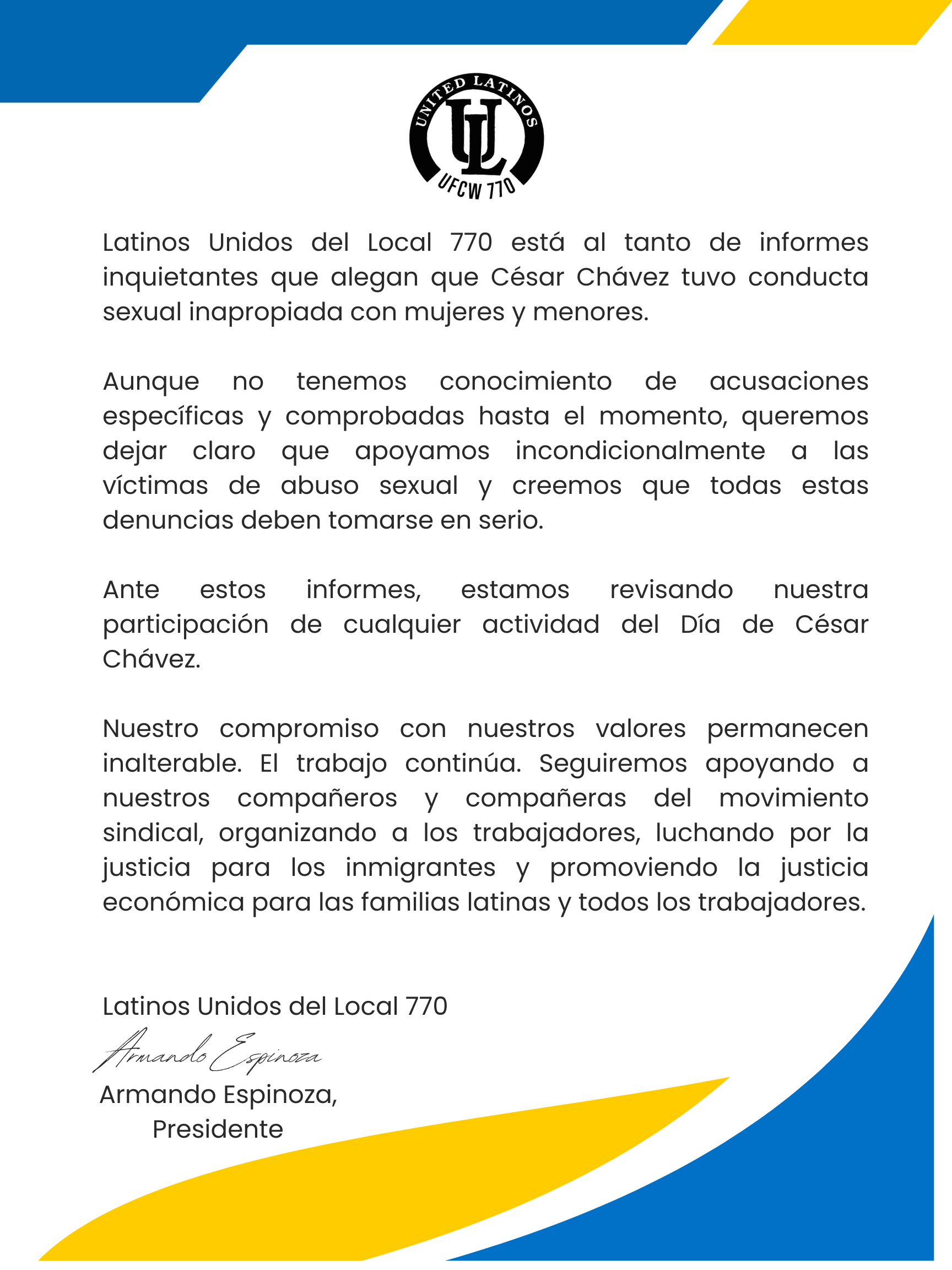 The United Latinos of the United Food and Commercial Workers (UFCW) is an organization of union members and allies who have joined together to promote issues and pursue interests important to Latinx workers.